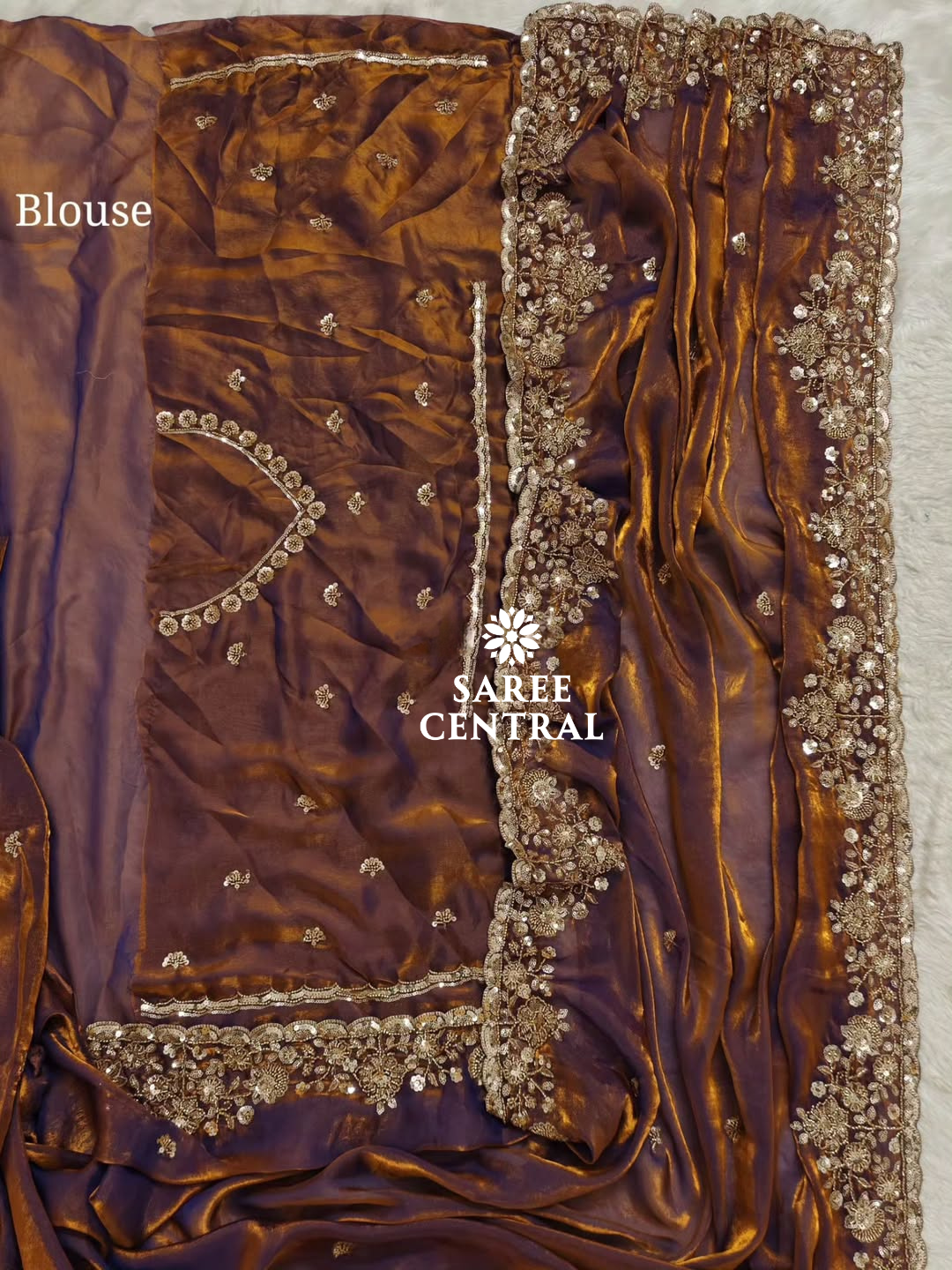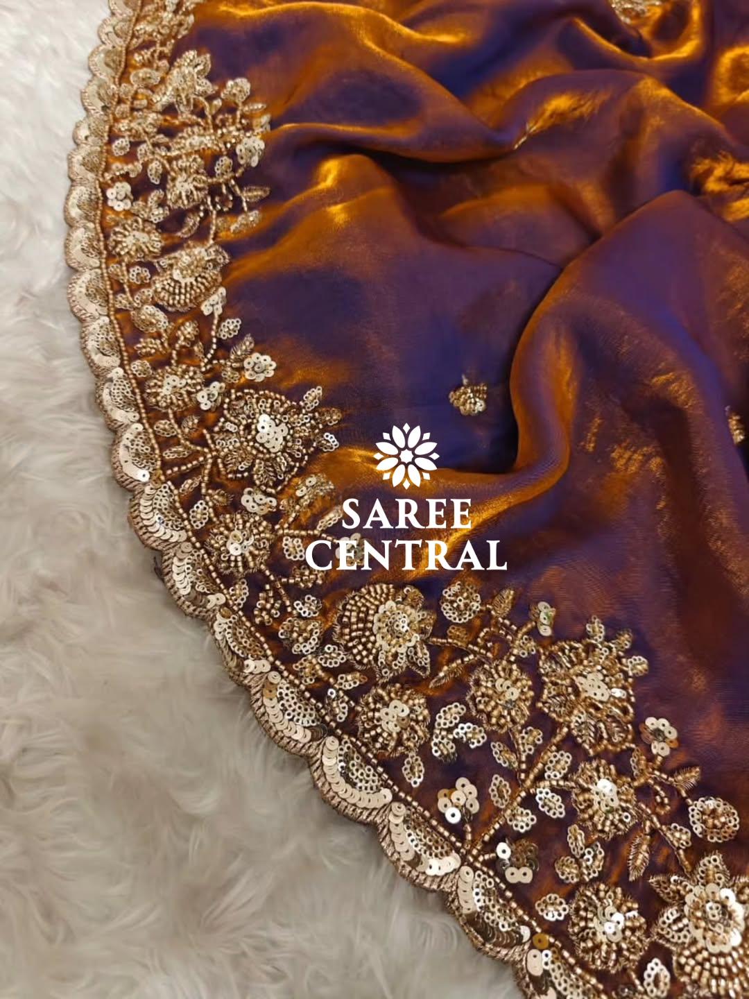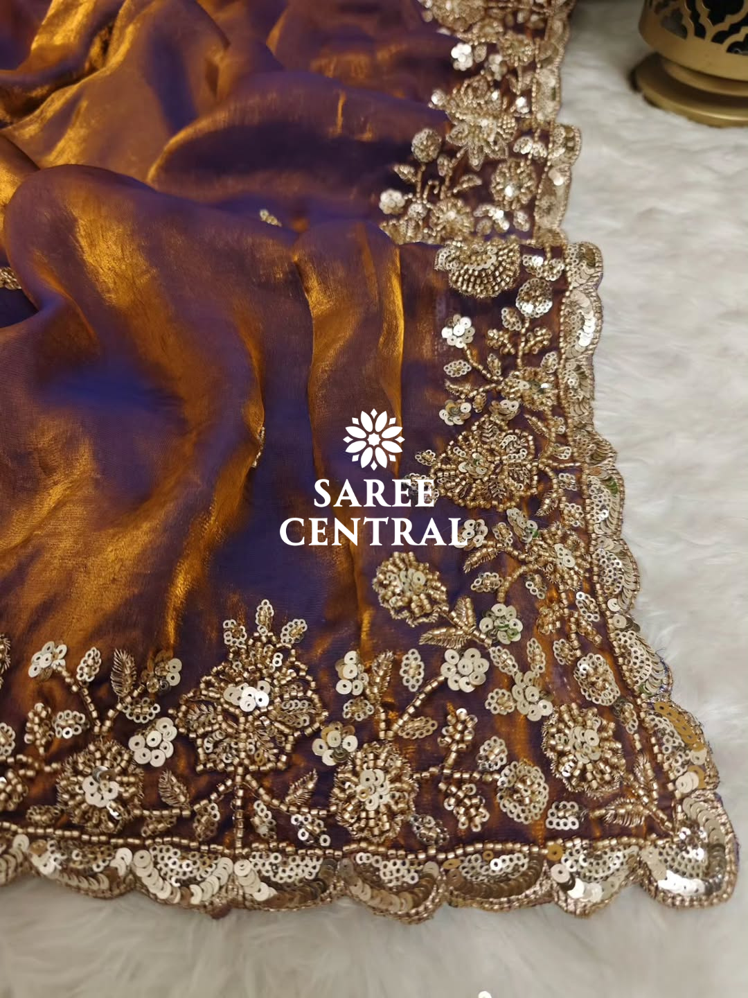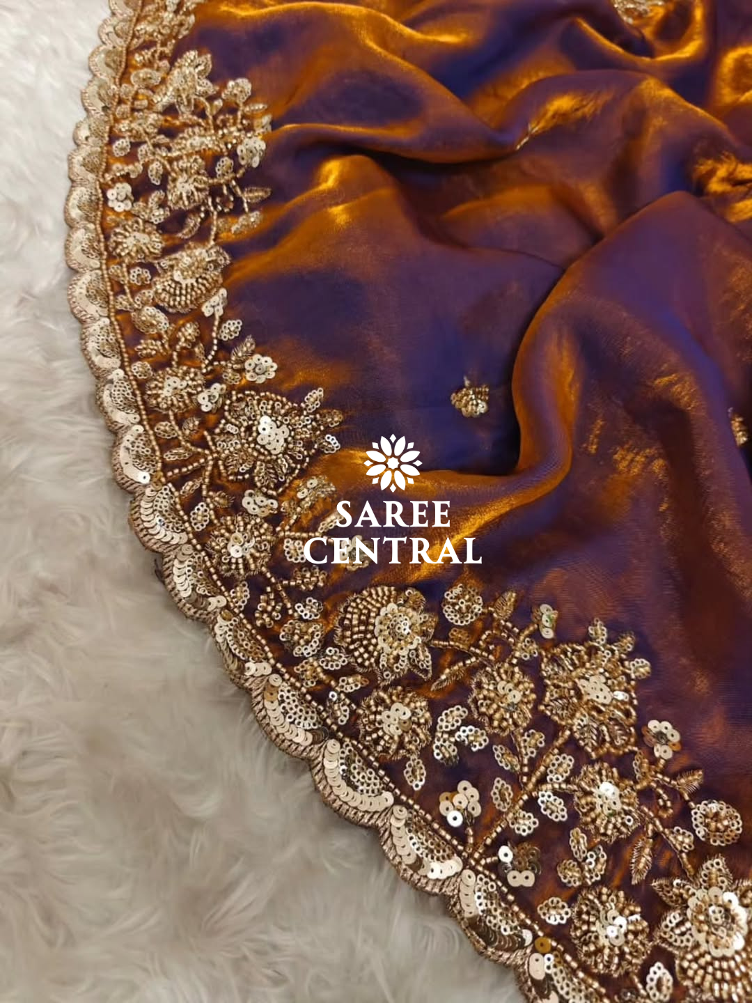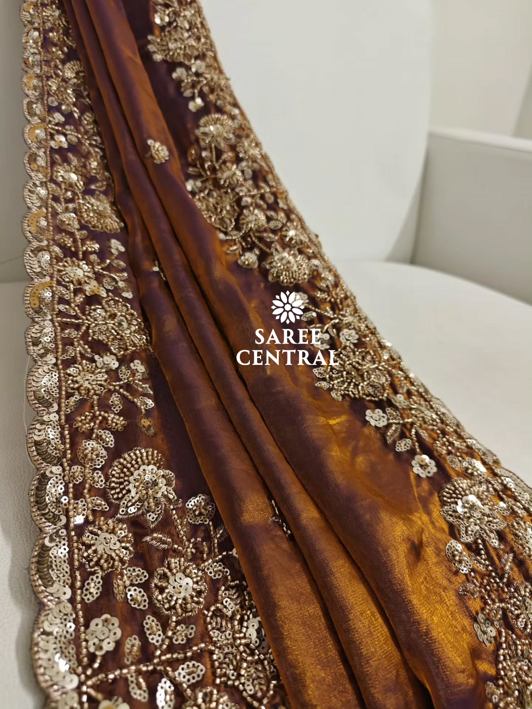 Copper Gold Cutdana Beads, Sequins Embroidered Partywear Saree (SC55521)