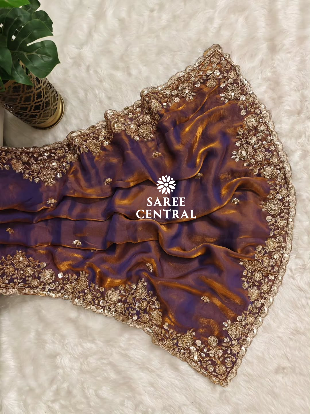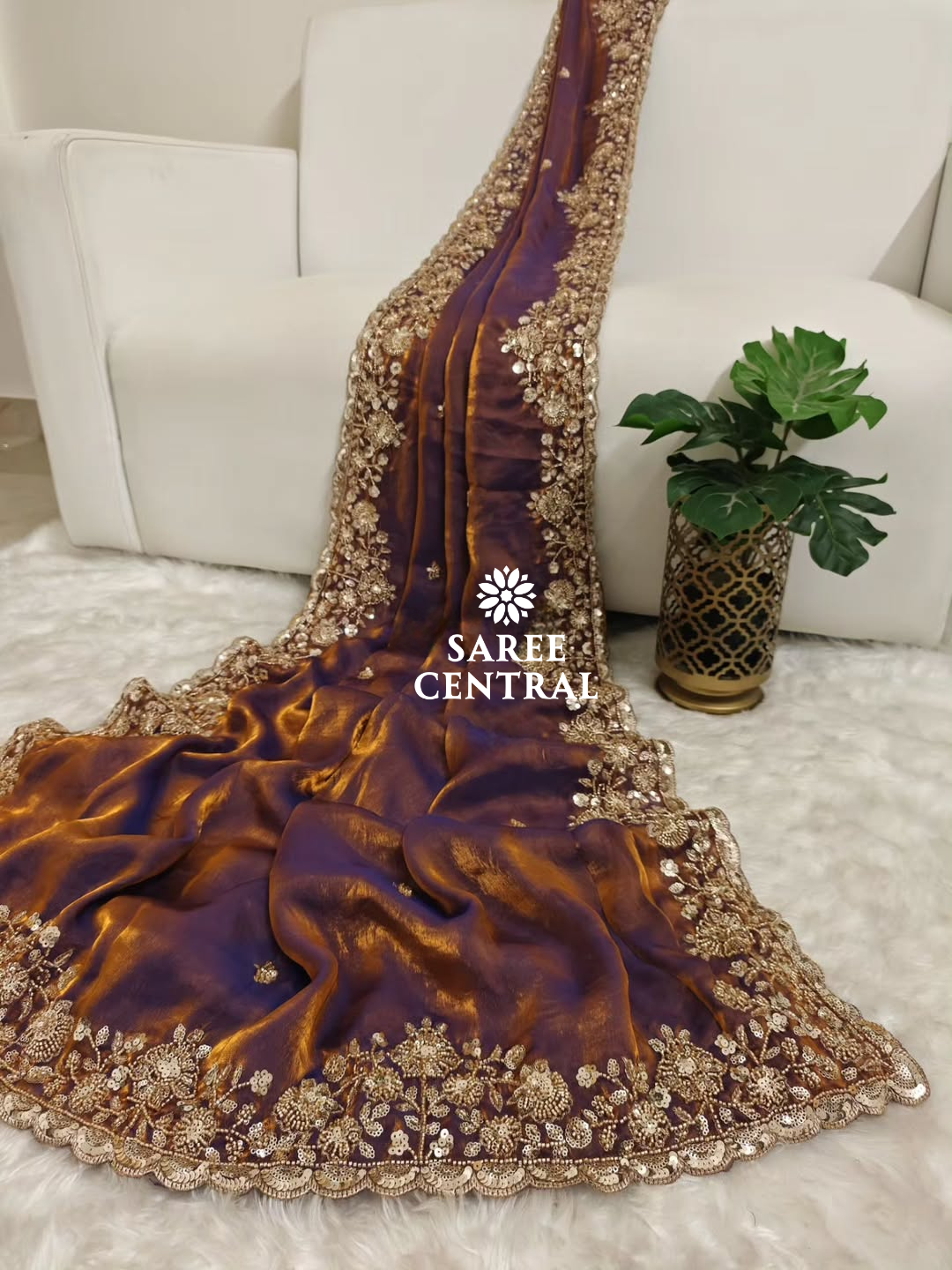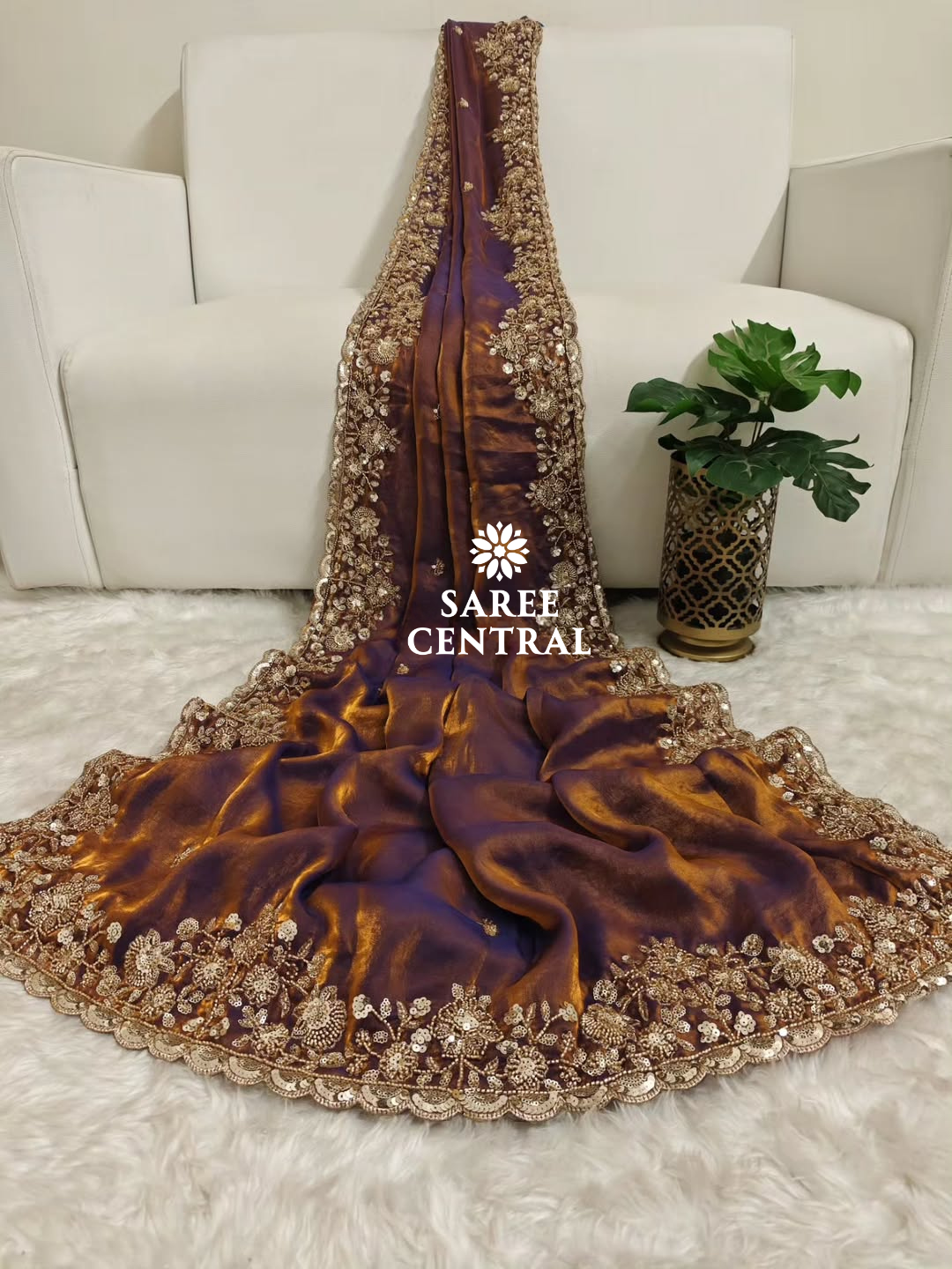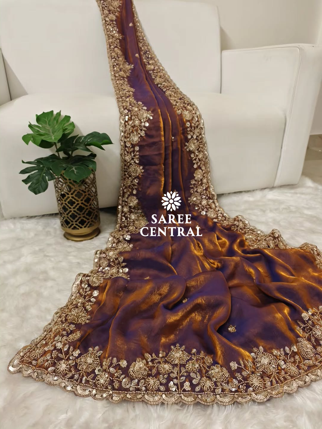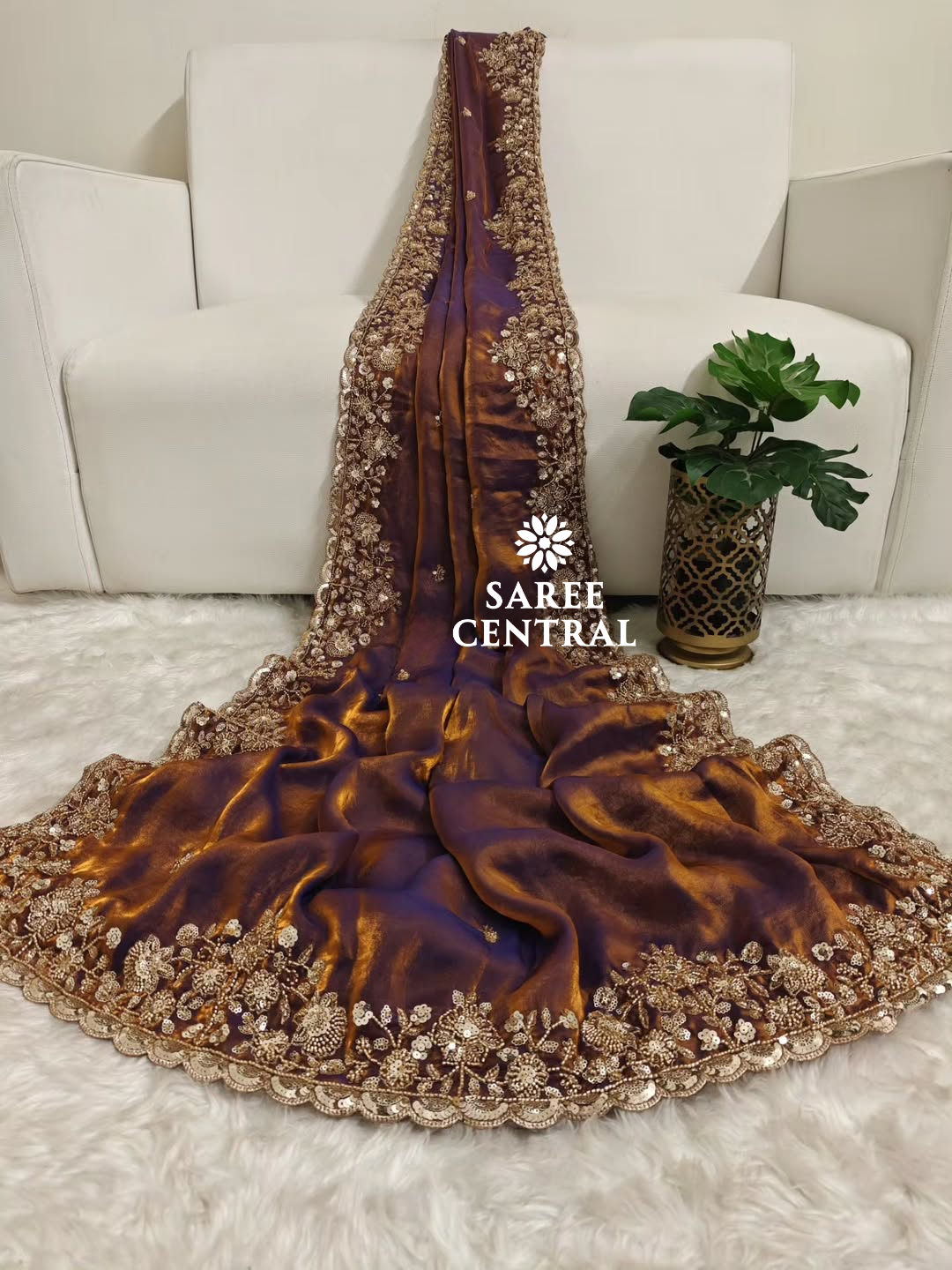 Copper Gold Cutdana Beads, Sequins Embroidered Partywear Saree (SC55521)