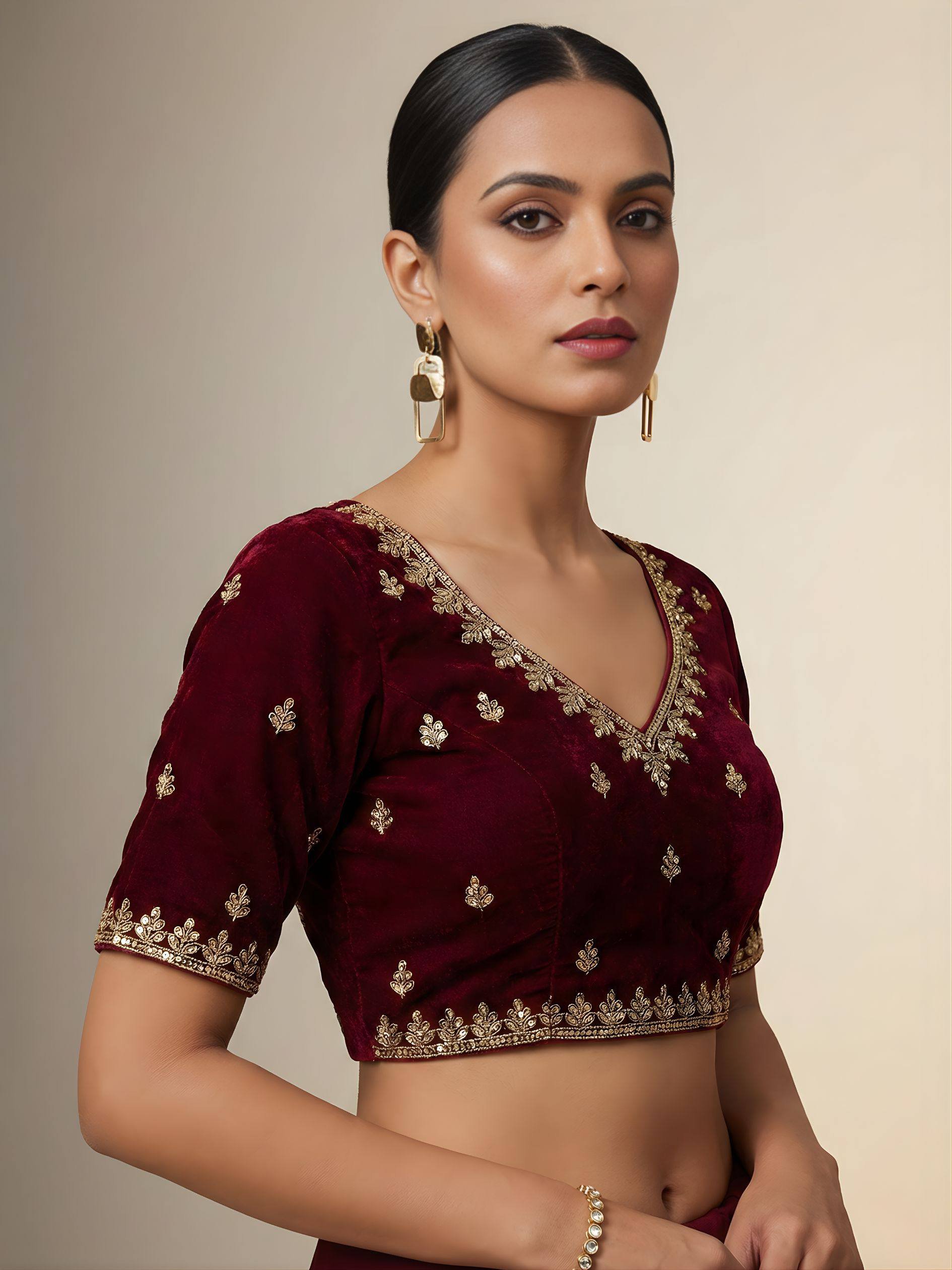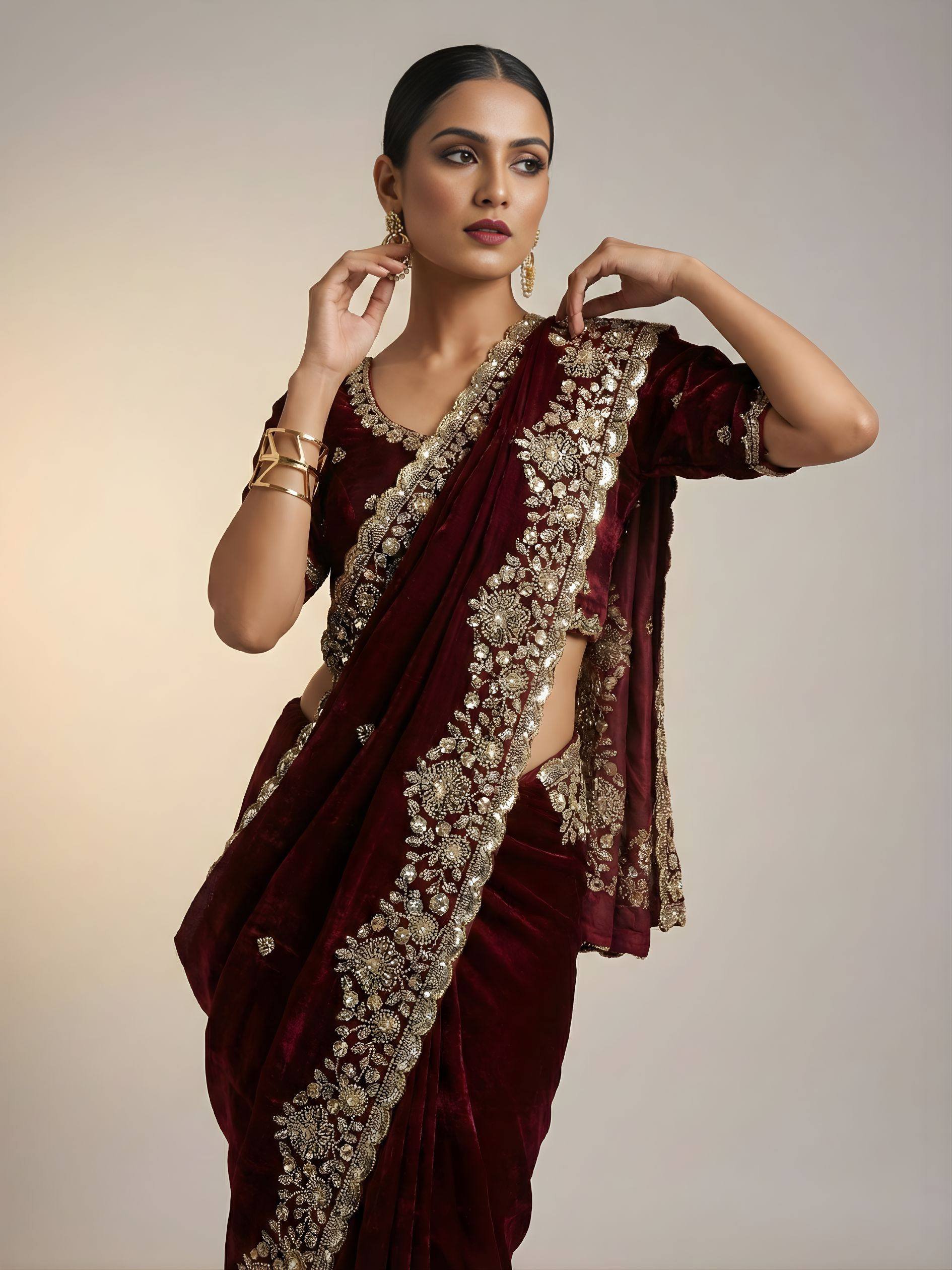 Maroon Gold Cutdana Beads, Sequins Embroidered Partywear Saree (SC55518)