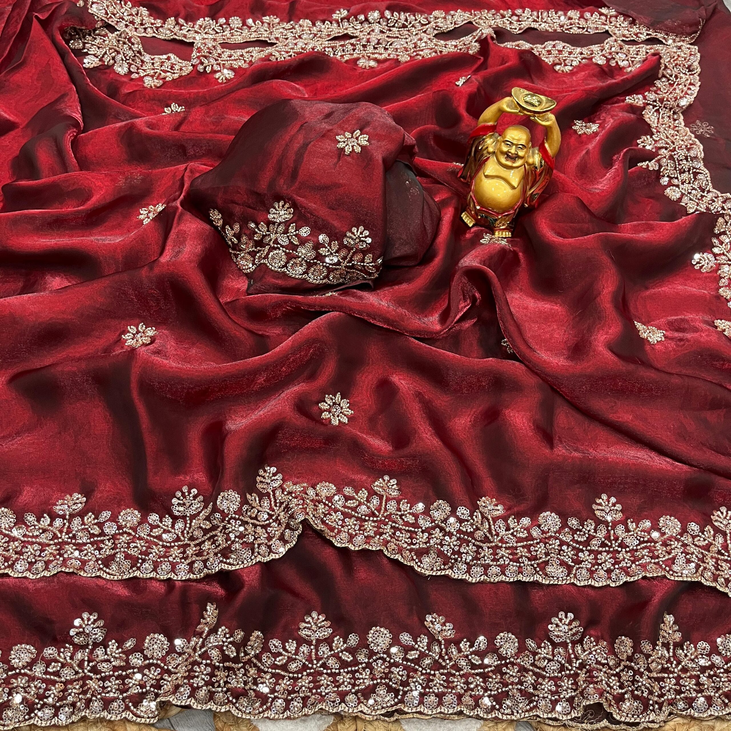 Maroon Cutdana Beads & Sequins Embroidered Partywear Saree (SC85514)