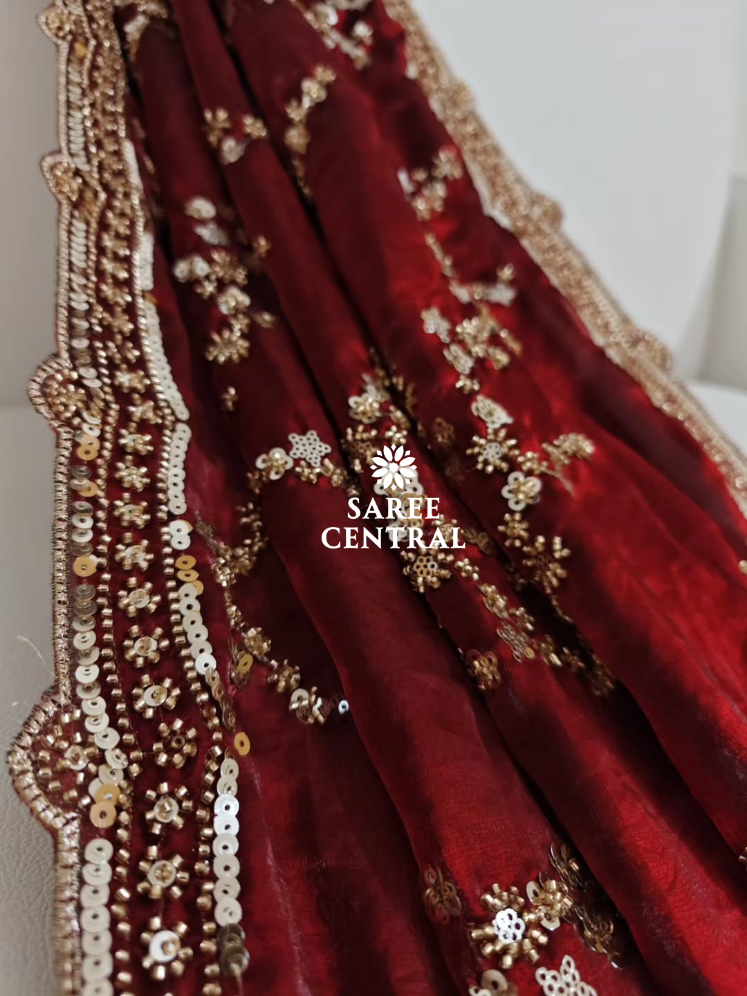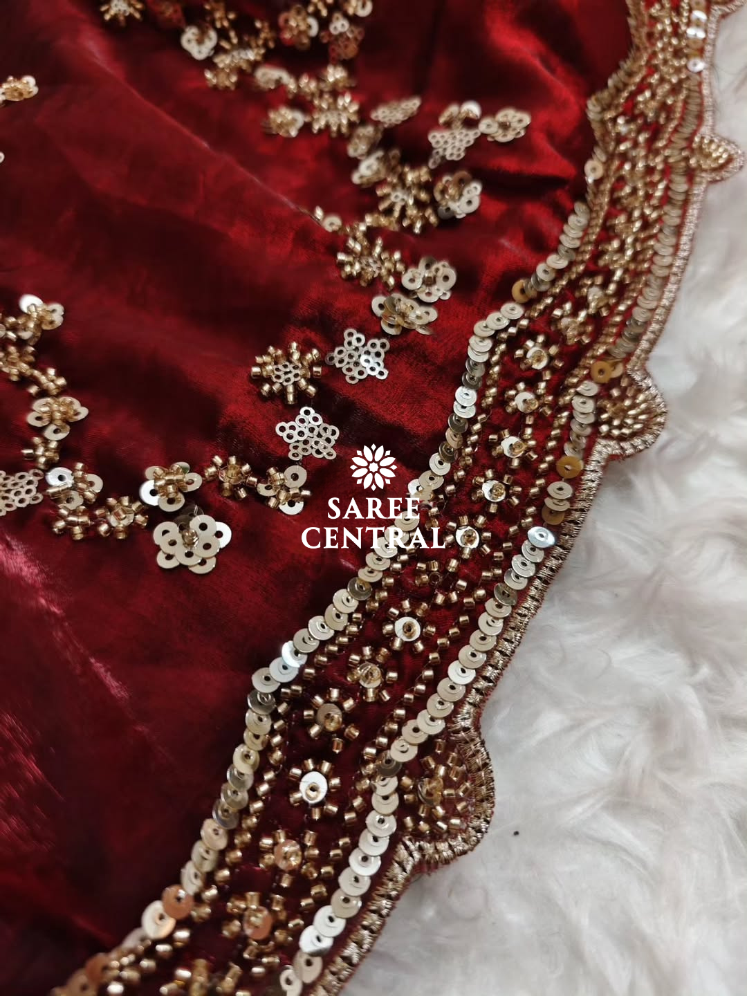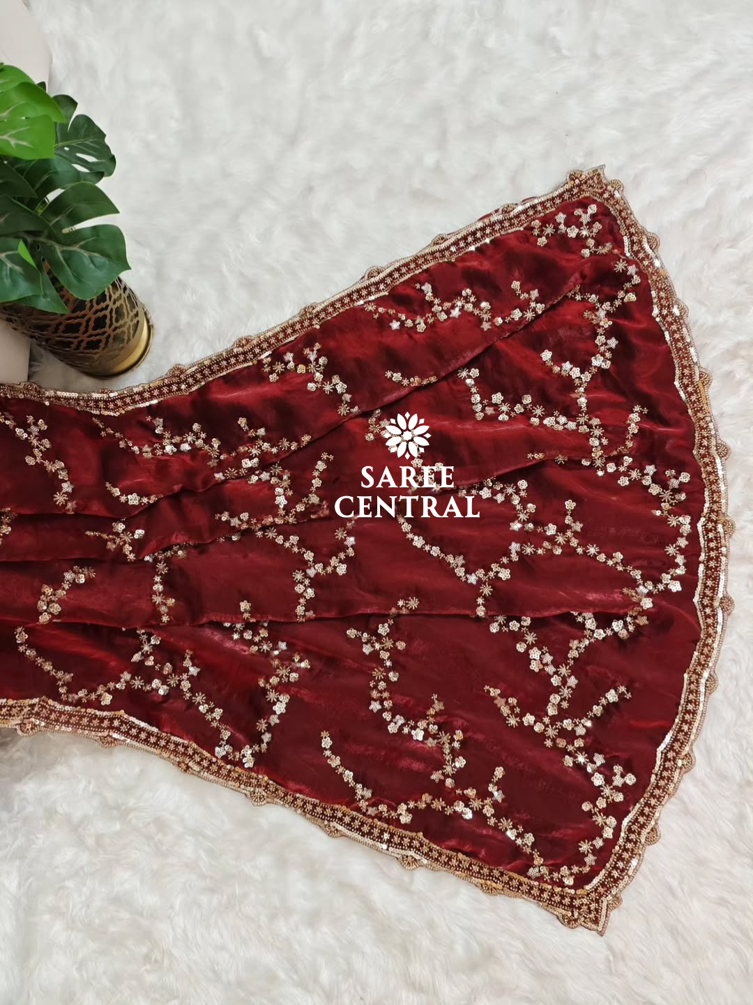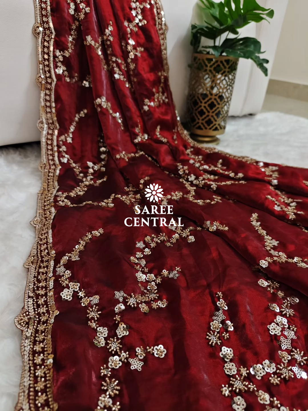 Maroon Gold Beads, Sequins Embroidered Partywear Saree (SC11226)