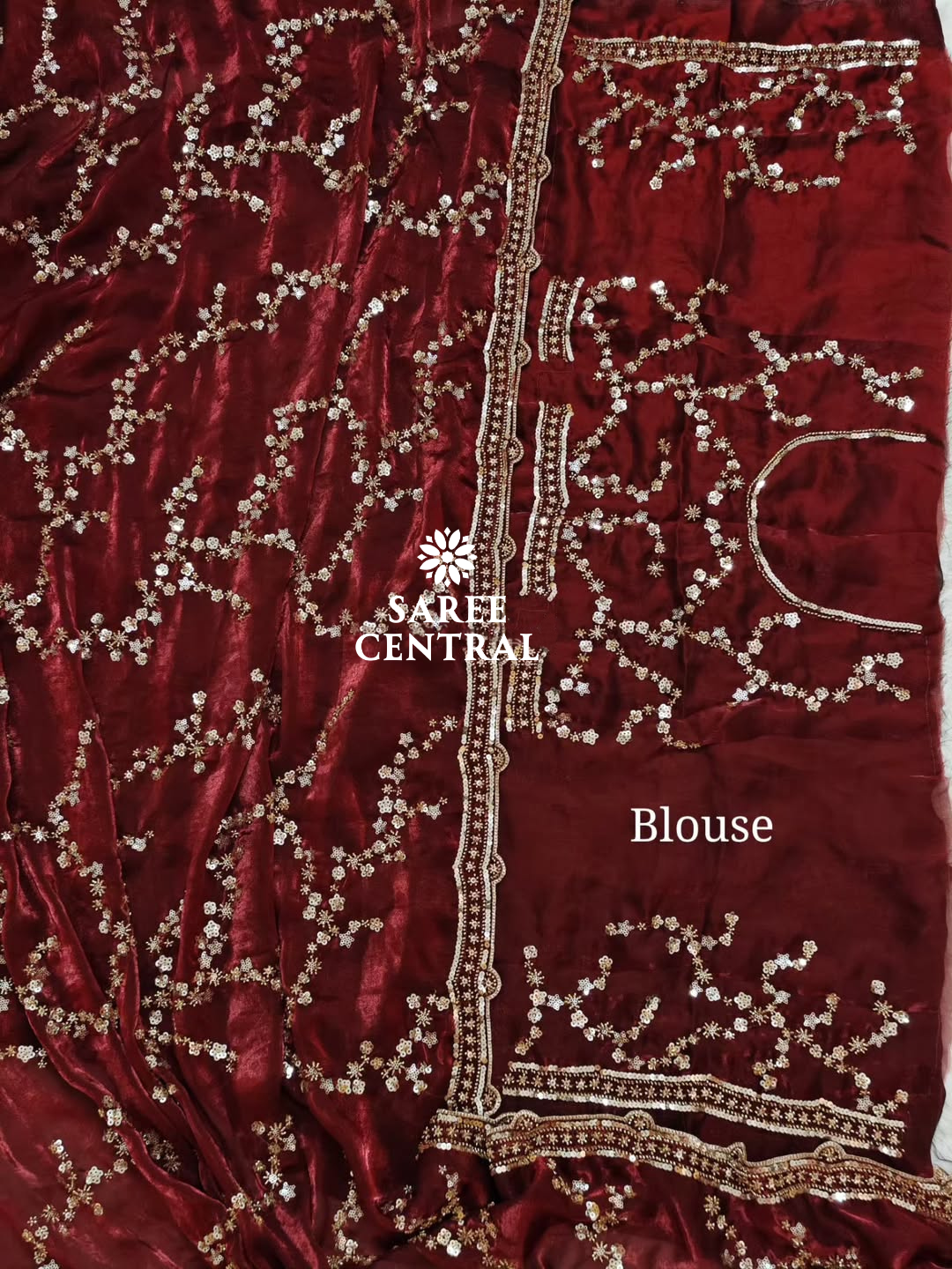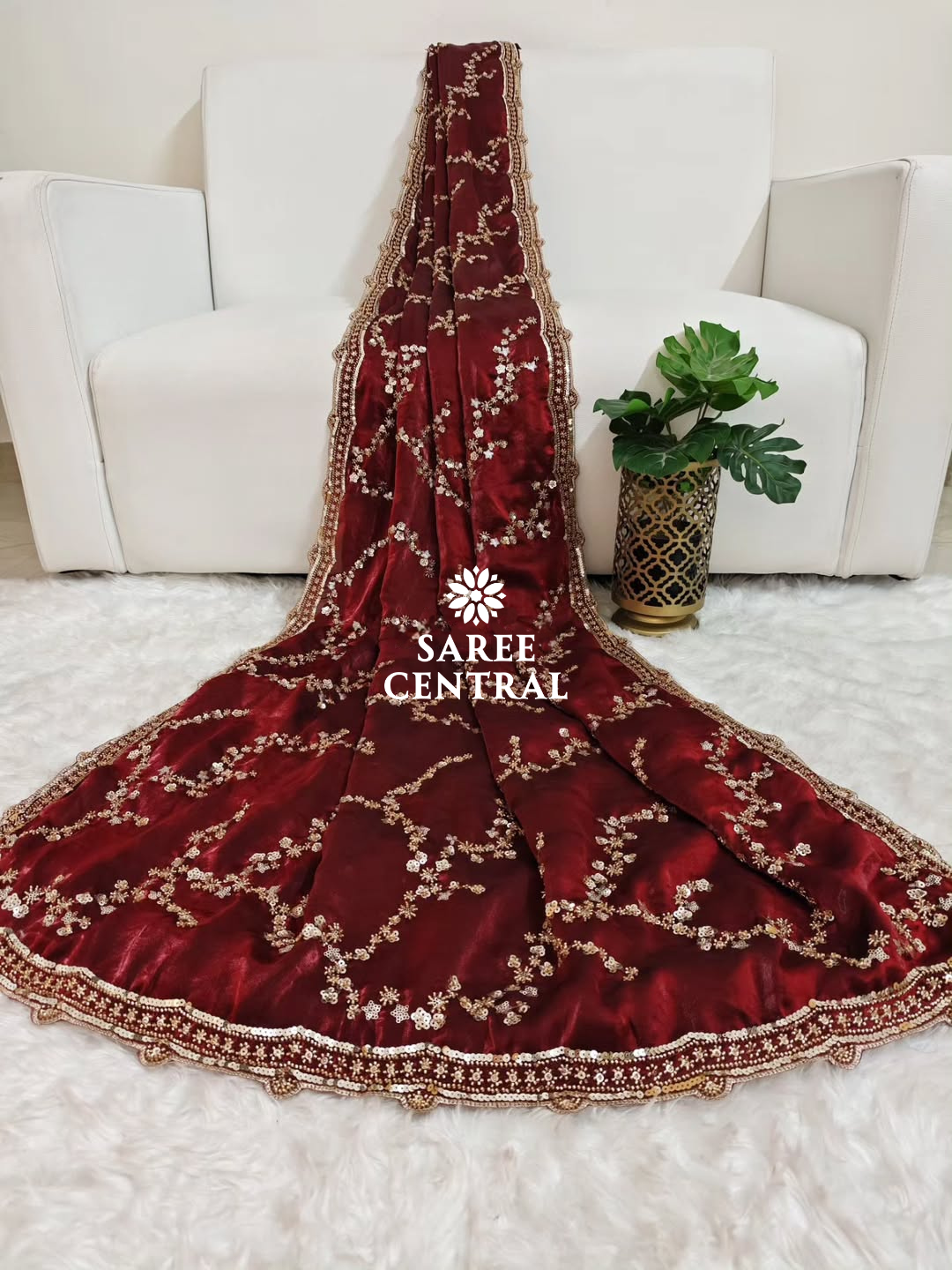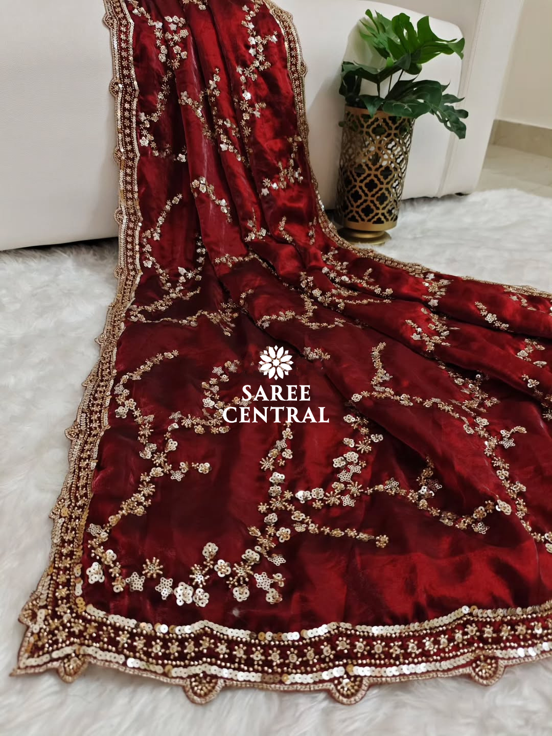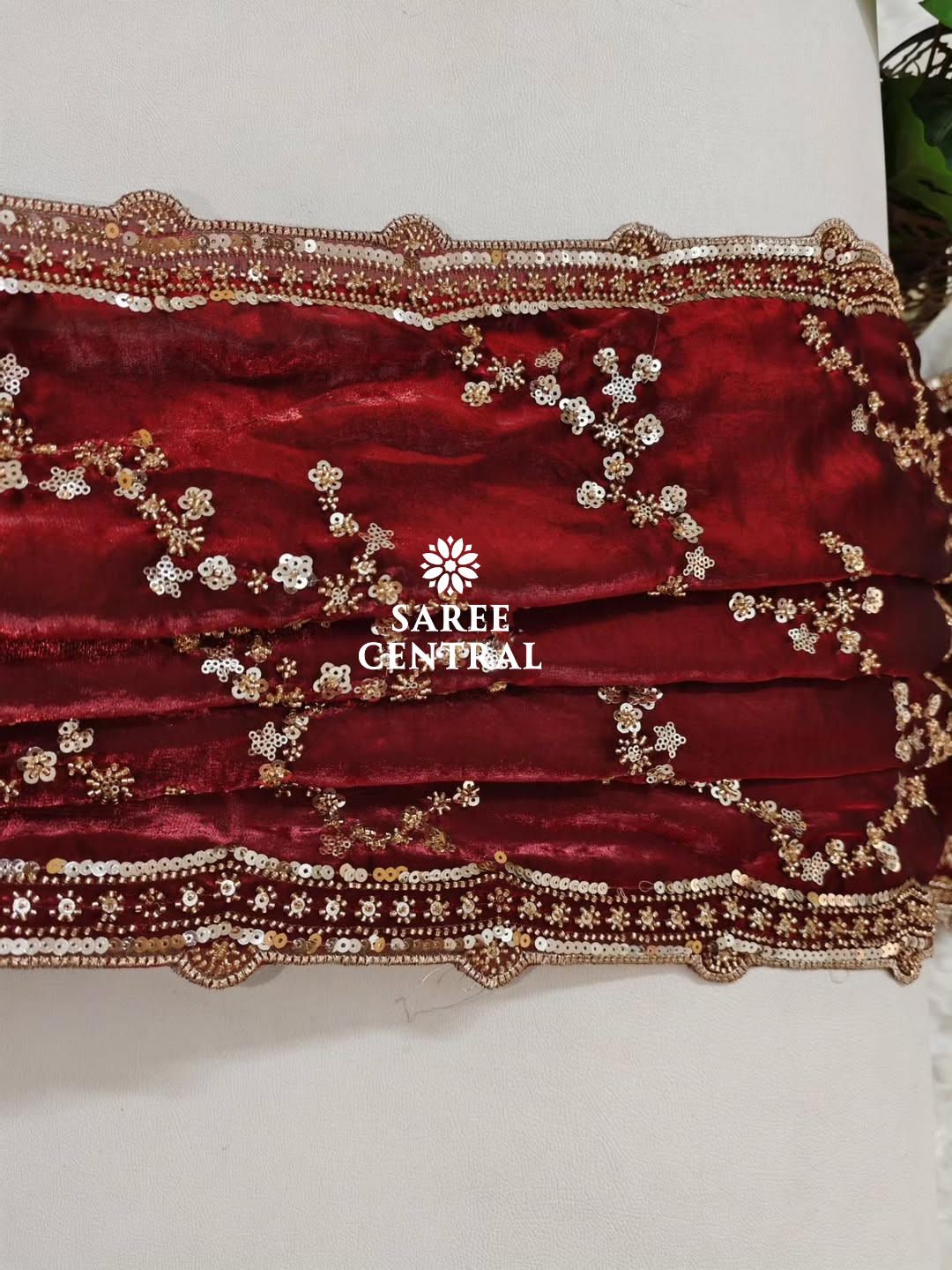 Maroon Gold Beads, Sequins Embroidered Partywear Saree (SC11226)