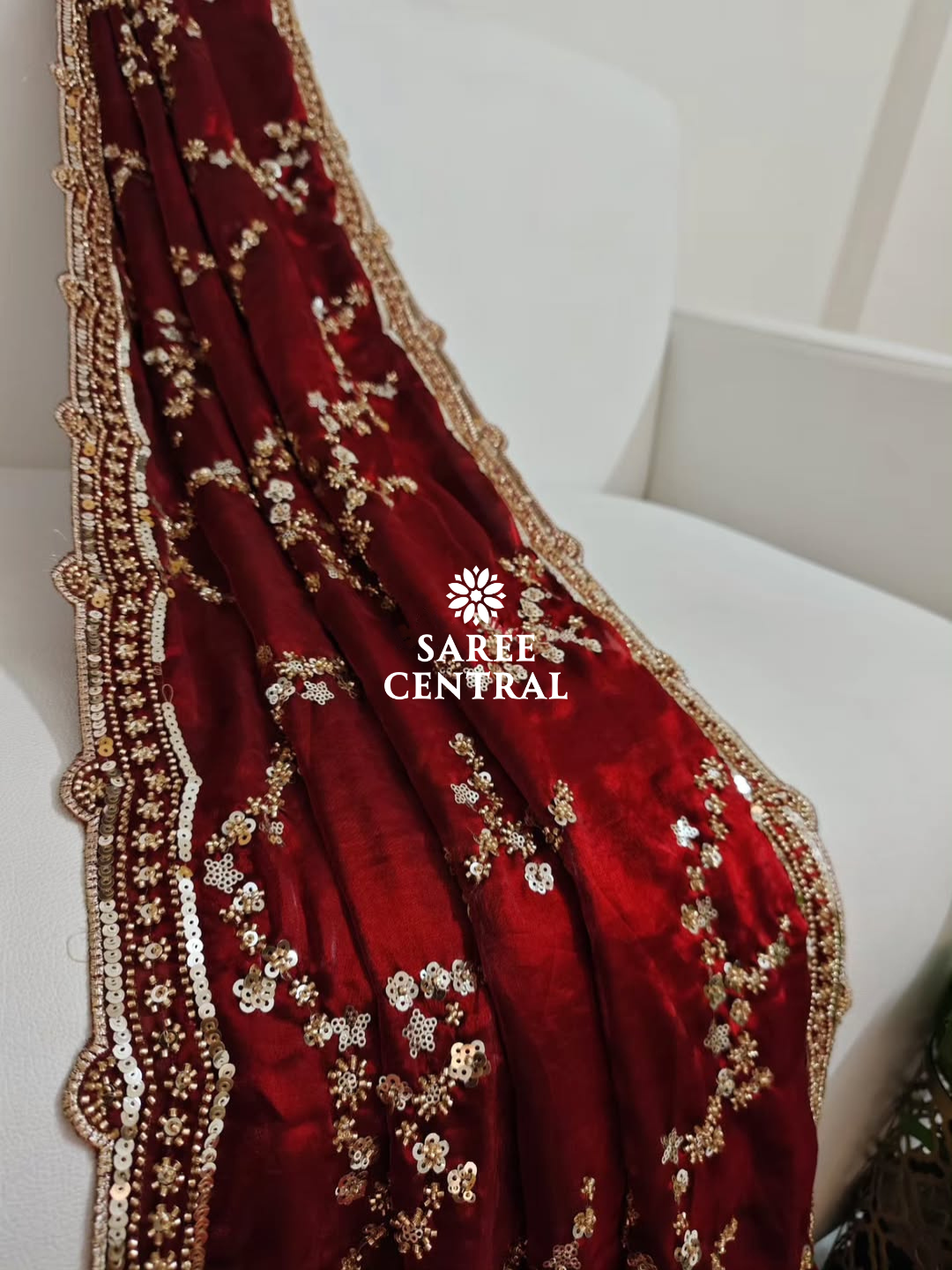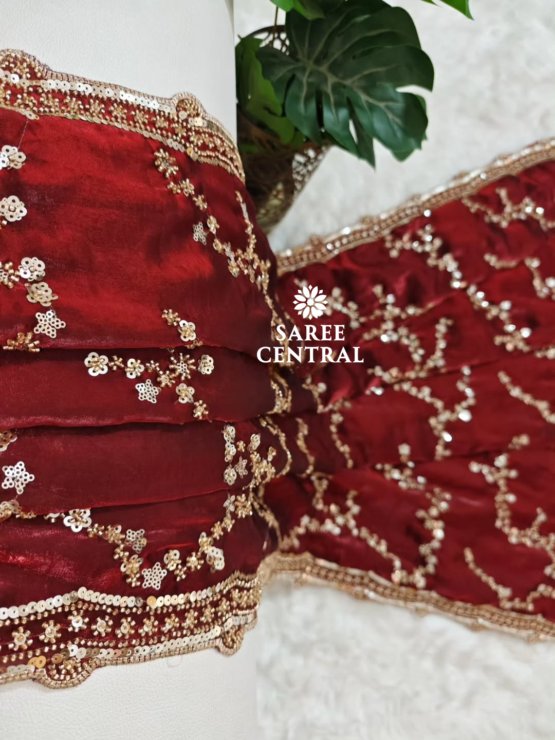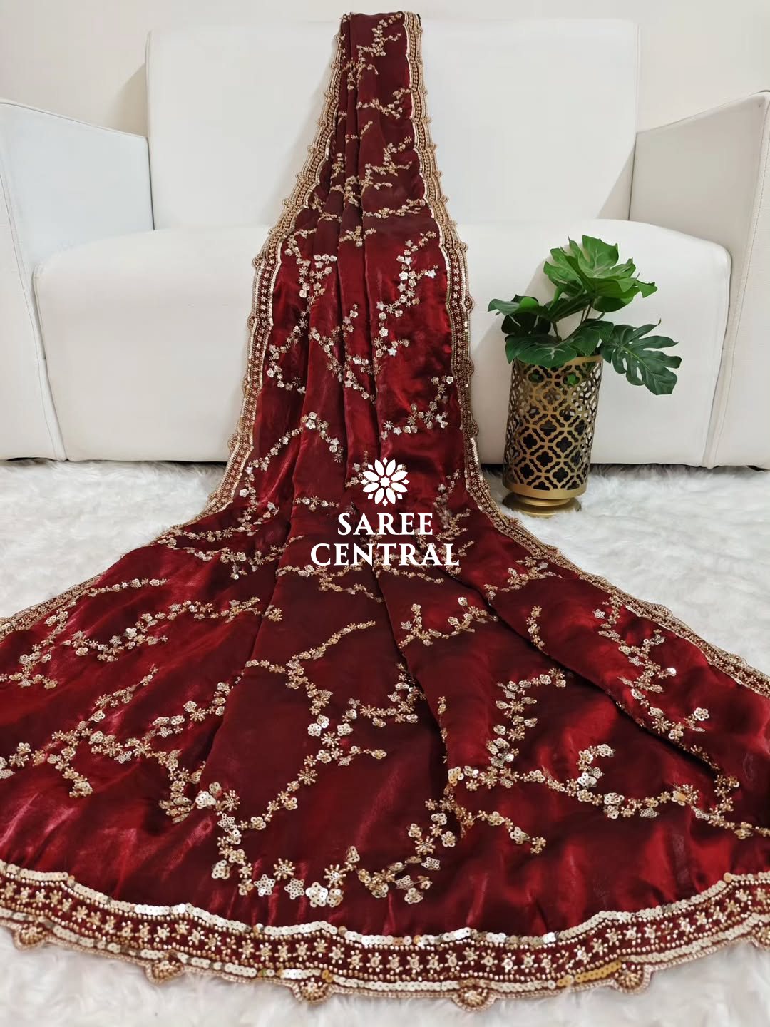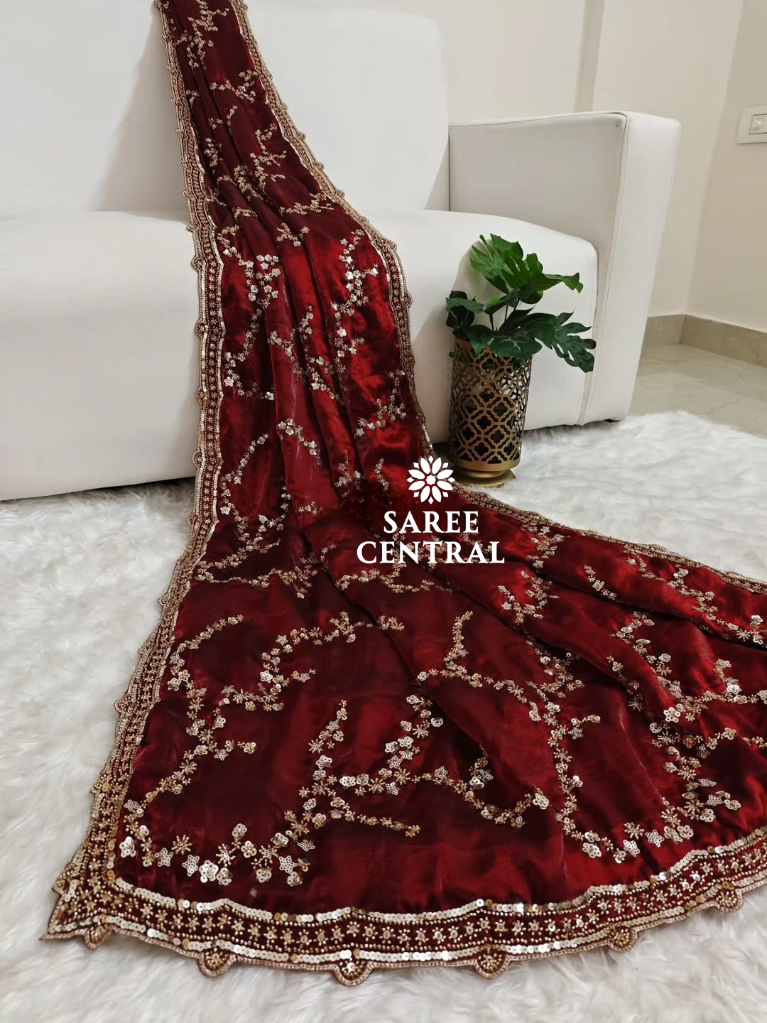 Maroon Gold Beads, Sequins Embroidered Partywear Saree (SC11226)