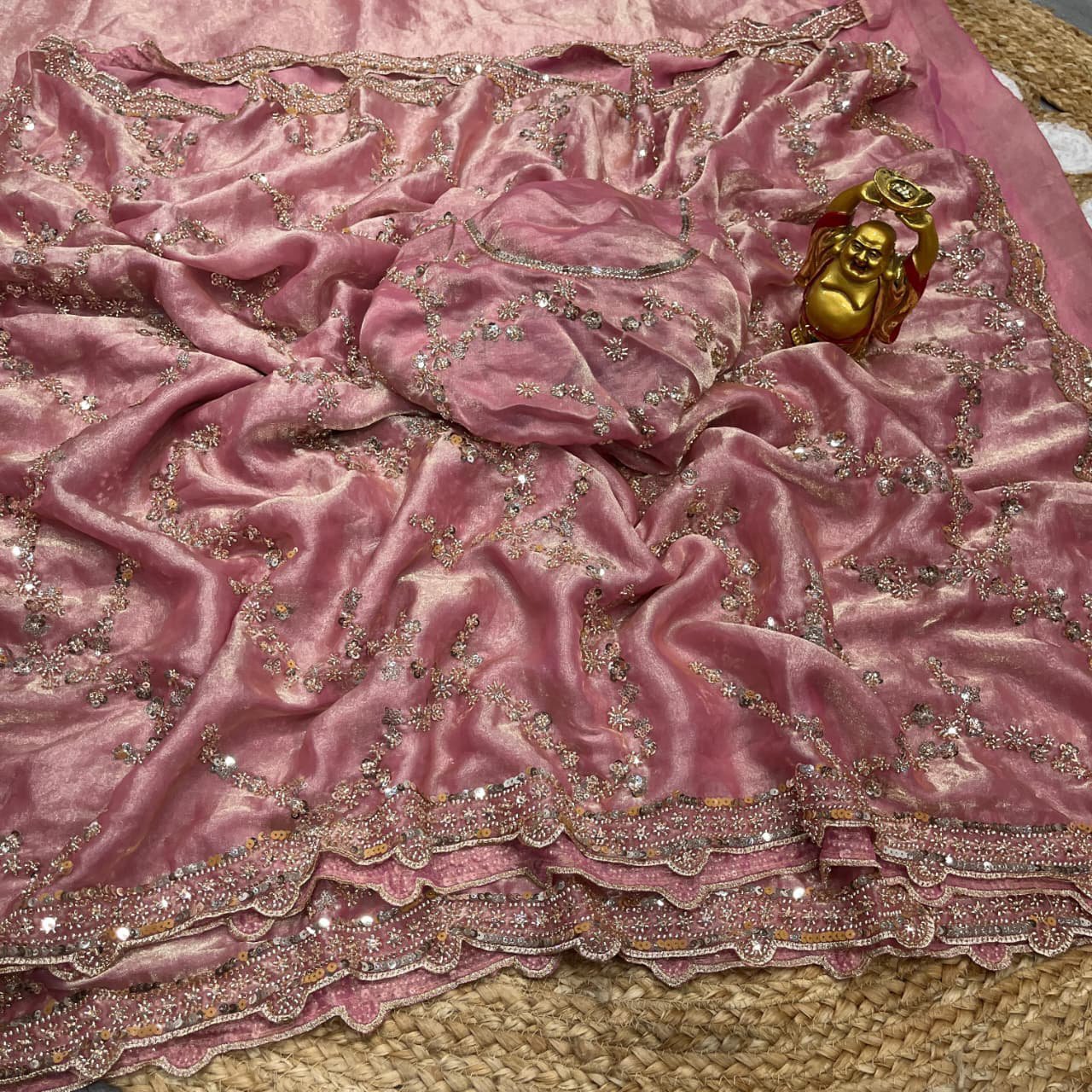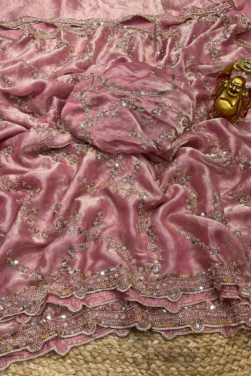Pink Gold Beads, Sequins Embroidered Partywear Saree (SC11227)